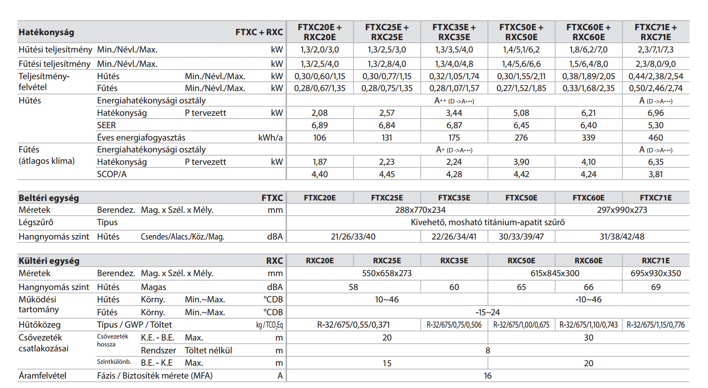 A Daikin FTXC50E / RXC50E általános szerelési információi: