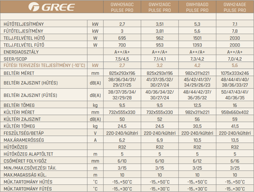 A Gree GWH24AGE Pulse Pro Inverteres Split klíma fontos tulajdonságai: